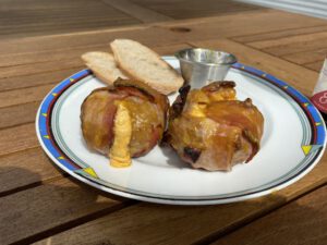 Bratwurstkugeln mit Obatzter und Speckmantel